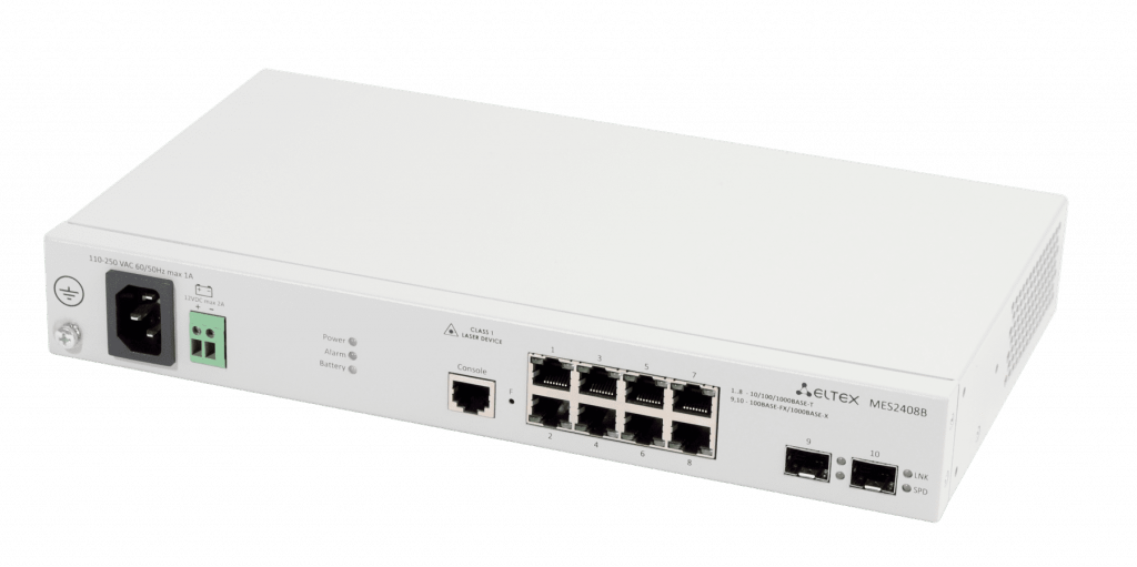 Eltex Ethernet-коммутатор MES2408B, 8 портов 10/100/1000BASE-T, 2 порта 100BASE-FX/1000BASE-X, L2,220В AC, 12В DС