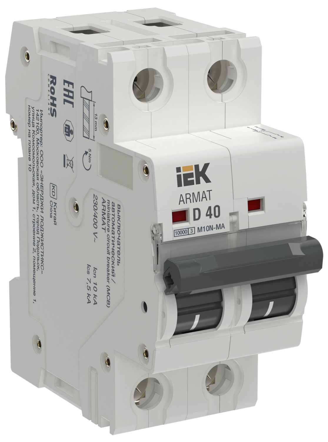 Автоматический выключатель IEK ARMAT M10N-MA 2P D 40А