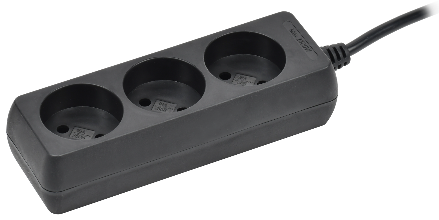 IEK Удлинитель У3 3 места б/з 1,5м 2х0,75мм2 10А 250В чер.